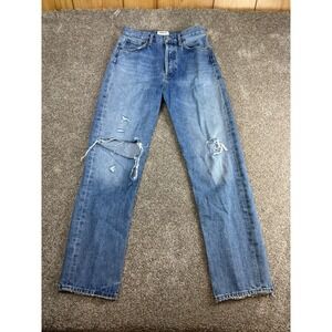 AGOLDE High Rise Button Fly Ever More Distressed Size 26 Denim Jeans Pants