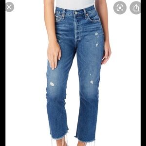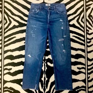 AGOLDE High Rise Feel Good Distressed Crop Denim straight leg