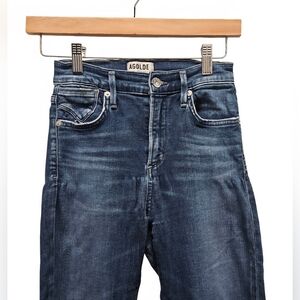 AGOLDE High Rise Raw Hem Crop Skinny Denim Jean Size 24 Dark Wash A018-2022