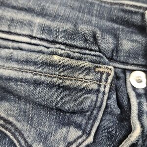 These jeans are pre-owned in good condition except there is a little bit of discoloration on the front pocket and some snagging which can be seen in the photos.