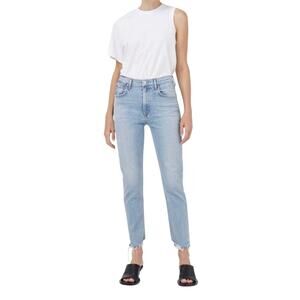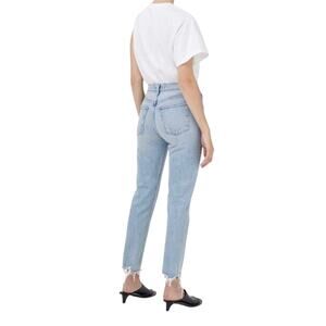 AGOLDE High Rise Straight Leg Jeans Light Blue Denim Raw Hem Women's Size 25