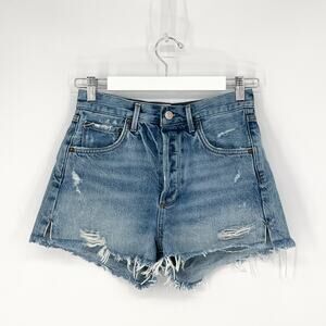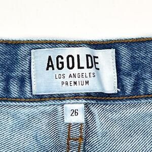 AGOLDE Jaden High Rise Distressed Denim Shorts Surreal Wash Size 26