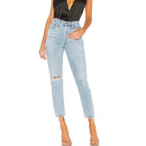 AGOLDE Jamie High Rise Classic Distressed Tapered Jeans in Shakedown 25 NEW
