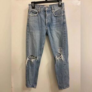 AGOLDE Jamie High Rise Classic in Spectator Blue Size 25. Excellent pre-owned condition, no flaws. The knees have a bit more distressing then stock photo.