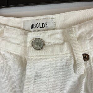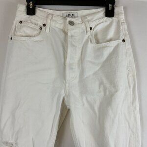 AGOLDE Jeans Riley Crop 26 White Distressed Destroyed Button Fly