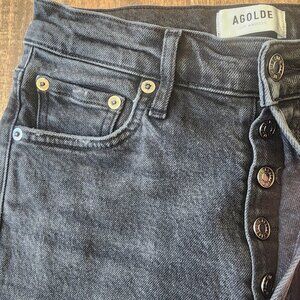 Brand markings: AGOLDE waistband label and branded metal buttons visible