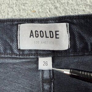 AGOLDE Jeans Womens 26 Pants Black Realm Pinch Waist High Rise Kick Fading Denim