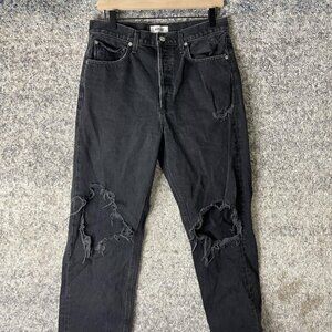 AGOLDE Jeans Womens 29 Washed Black Distressed Ripped Button Fly Straight Leg