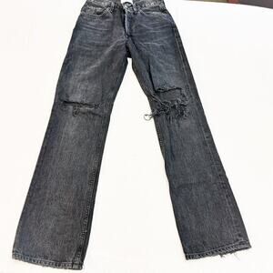 AGOLDE Lana Jean Mid Rise Vintage Straight Disorder Black Denim A104B-1157 SZ 24
