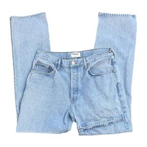 AGOLDE Lana Slice Mid Rise Relaxed Straight Leg Blue Denim Jeans in Size 29.