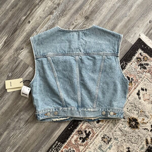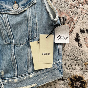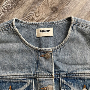 Tags: distressed; fray; light blue; light wash; white wash; charli; cropped; button down; 90s; denim on denim.