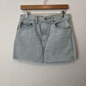 AGOLDE Light Wash Blue Denim Cut-Off Raw Hem Mini Jean Skirt Women's Size 26