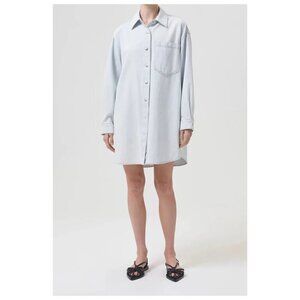AGOLDE Mazie Long Sleeve Nonstretch Denim Shirtdress in Wash Vague Size Medium