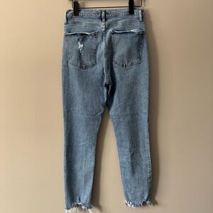 AGOLDE NICO HIGH RISE SLIM JEAN W RAW DISTRESSED HEM SIZE 27 MED BLUE WASH