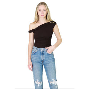 AGOLDE NWT Hilma Twist Sleeve Off the Shoulder Bodysuit in Brown // L