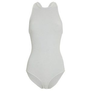 Tailored for a sleek high neckline in their rib kit, AGOLDE's Nova bodysuit feature criss cross straps along the back for a daring twist. Snap bottom closures.