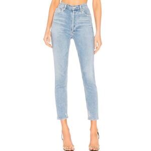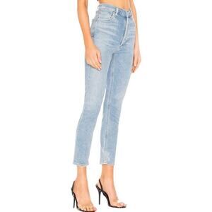 AGOLDE Nico High Rise Slim Fit Jeans in excellent used condition, size 26, featuring the unique Embark wash with light fading and distressed details. These clean jeans from my personal closet offer a high-rise fit, slim silhouette, button fly, and 5-pocket design. Made in the USA with premium stretch denim, they’re perfect for chic, casual looks. Selling because they no longer fit.
