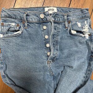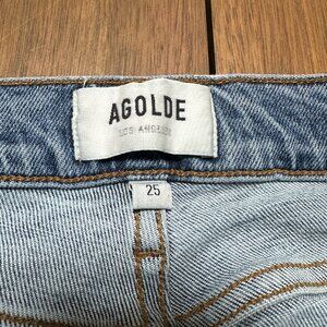 Great condition size 25 Agolde jeans in style called Nico. They are high rise slim, in color Rooted. All their jeans are the softest material - love these they are just too small for me now.