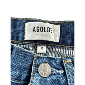 AGOLDE Parker Cut Off Denim Shorts Size 23 Medium Wash Frayed Hem Cotton Button