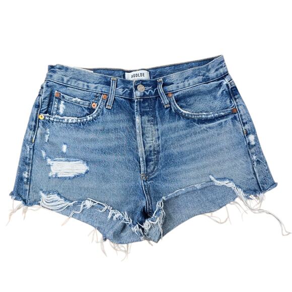AGOLDE Parker Cut Off Distressed Shorts Clutch Size 26 Blue Button Fly Vintage