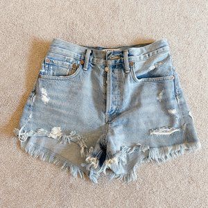 Size 24 Parker AGOLDE light wash denim shorts; fit TTS; rarely worn, great condition! Super cute, just am a full time working girly and don't get to wear shorts as often now.