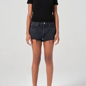 Chic charcoal jean shorts by Agolde. Frayed hem and button fly. Perfect for casual wear. Great Condition.