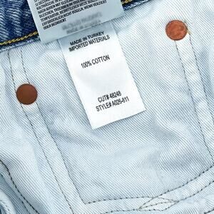 Details: Distressed details, frayed hem, button and zip fly, classic five-pocket design