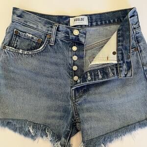 AGOLDE Parker Long Short 25 Medium Wash Wheel Cutoff Button Fly 4" Inseam