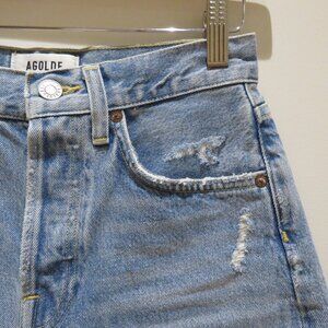 AGOLDE Parker Long Shorts in Swapmeet Light Denim Boho Distressed Casual 23 NWT