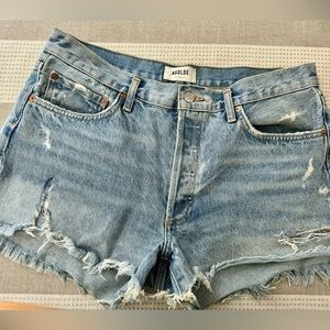 Size: 30. Run slightly big. I sized up one size for my athletic thighs and these fit great. A roomy vintage fit.