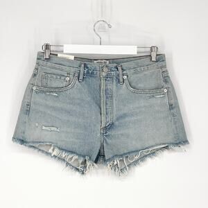 AGOLDE Parker Vintage High Rise Denim Shorts Bitter Distressed Raw Hem 28 NWT