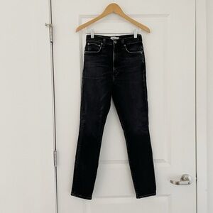 AGOLDE Pinch Waist Washed Black Denim Ultra High Rise Skinny Jeans Organic