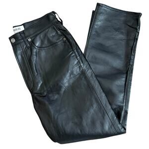 AGOLDE Recycled Leather Fitted 90's Trouser Pants Detox Black Size 27