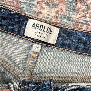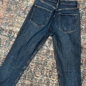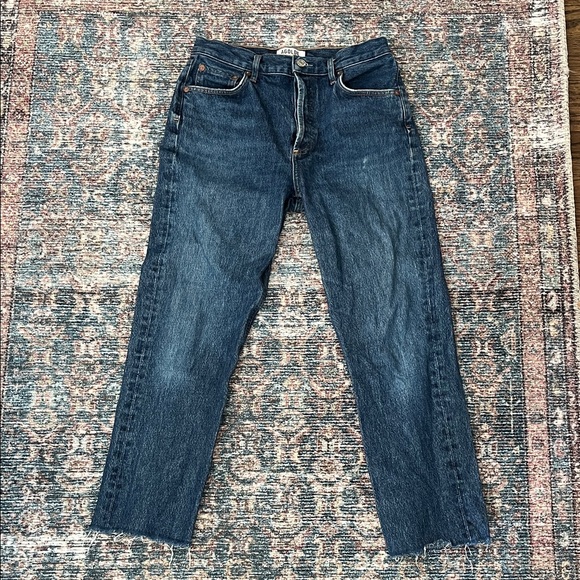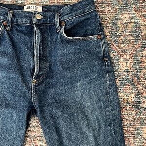 Stylish straight jeans by Agolde. Deep blue color. Versatile and chic.