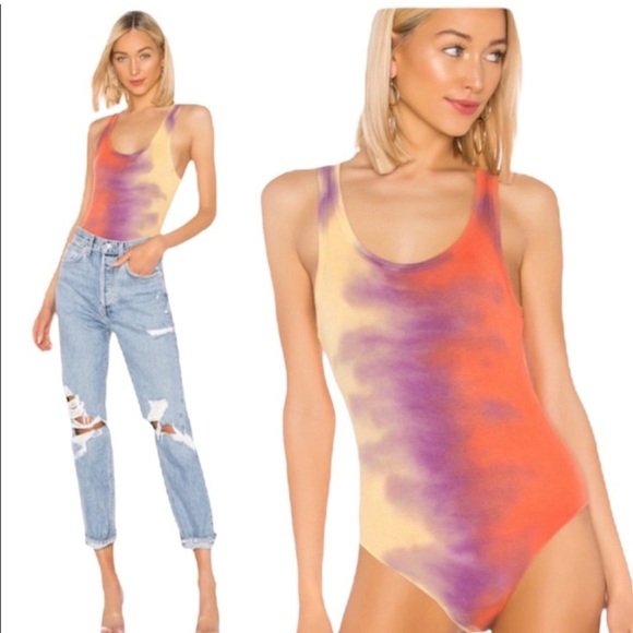 AGOLDE Revolve yellow purple and pale orange tie dye ribbed bodysuit. Scoop neck tank. Size Small