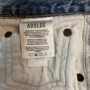 AGOLDE Riley Ankle Crop High Rise Straight Leg Blue Jean Distressed Hem Size 30