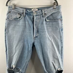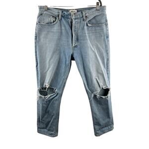 AGOLDE Riley Blue Crop Jeans Cotton Distressed Denim High-Rise Straight Size 31