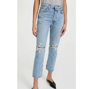 AGOLDE Riley Distressed Crop Jeans Faded Blue US 31 EUC MSRP $198