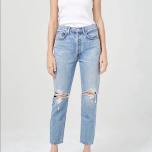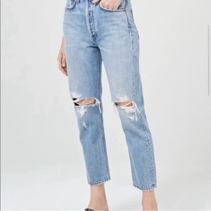 AGOLDE Riley High Rise Crop Distressed buttonfly Jeans 29