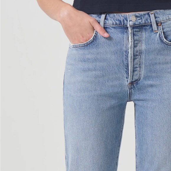 AGOLDE’s signature slim straight leg. With a better-than-vintage aesthetic, the Riley is an iconic brand favorite. The flattering high-rise and straight leg fits close to the body for a universally loved look.
