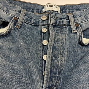 AGOLDE Riley High Rise Straight Crop Distressed Ripped Knee Jeans Size 26