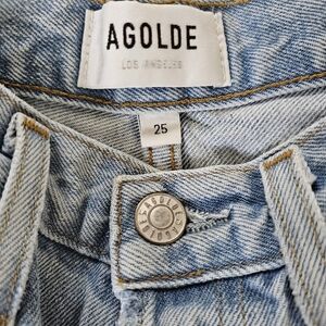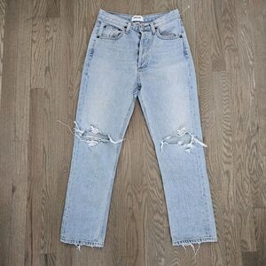AGOLDE Riley High Rise Straight Crop Distressed Knee Blue Jeans Size 25