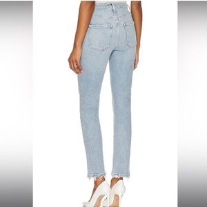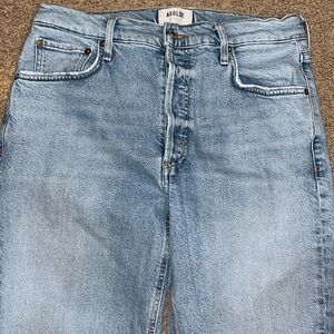 AGOLDE Riley High Rise Straight Crop Jeans Dynamic 29. Instead of replicating your favorite vintage styles, AGOLDE recreates them with a contemporary approach. Button fly. 5-pocket styling. Light whiskering and frayed raw-cut hem. Structured denim fabric with slight stretch. 99% organic cotton, 1% elastane. Approx measurements: 10.5“ rise, 25“ inseam, & 14.5“ waist. Great pre-owned condition. No stains/flaws. Smoke/pet free home. Offers welcome. Bundle & save. Ship same/next day. Packaged w/ care.