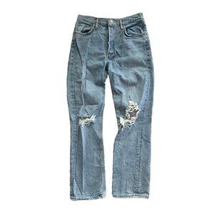 AGOLDE Riley High Rise Straight Crop Jeans Women's 28 Button Fly Distressed