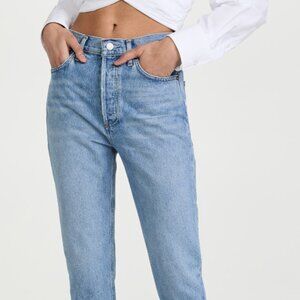LIKE NEW! An everyday jean you'll want to wear on repeat. AGOLDE updates their signature Riley straight-leg crops with a super-faded wash and shredded detailing for an effortlessly cool feel.