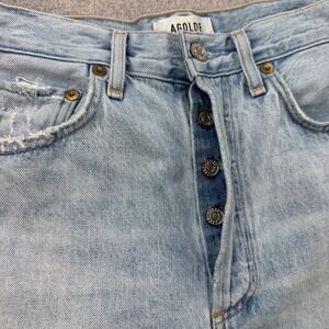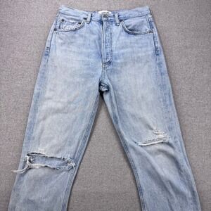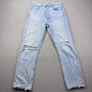 AGOLDE Riley High Rise Straight Leg Distressed Jeans Light Wash Button Fly Sz 26