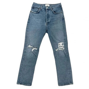 AGOLDE Riley High Rise Straight Leg Distressed Jeans in Whiplash Blue Denim Women’s Size 26