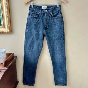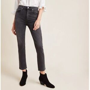 AGOLDE Riley High-Rise Straight Cropped Jeans Button Fly Charcoal Edit Wash 23