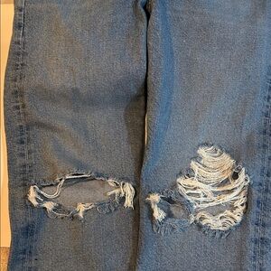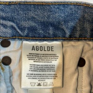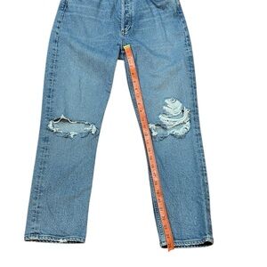 AGOLDE Riley Jeans, Size 28/6, Button Fly, Bustout Distressed Knees, Ankle Crop, High Rise, Straight Leg, Measurements in pics