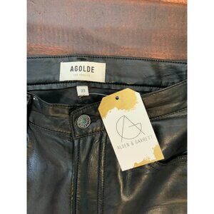 AGOLDE Riley Long Black Recycled Leather Blend High Rise Jeans $348 Size 23